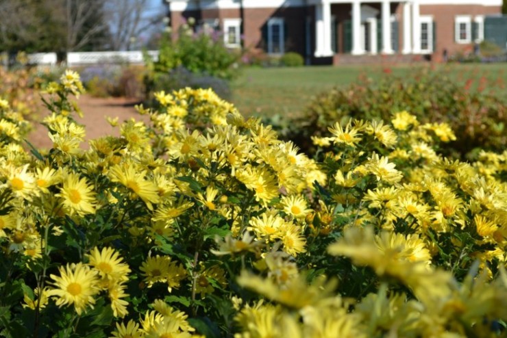 The chrysanthemum, the “Queen of Flowers,” has been cultivated in China since at least 500 B.C. The first to arrive in the West was a simple, semi-double form called “Old Purple.” It was introduced at Kew Gardens in London in 1790 and was illustrated in Curtis’ 1796 edition of the Botanical Magazine. The William Prince Nursery of Long Island, NY, listed “43 varieties of ‘Chinese’ chrysanthemums,” in its 1820s catalog. By the mid-nineteenth century, at least fifty varieties had been developed from new strains sent from China. Their forms ranged from single, double, quilled, anemone-flowered, to pompom. The chrysanthemum’s popularity increased and in 1871 Shirley Hibberd’s The Amateur’s Flower Garden listed the “Best One Hundred Chrysanthemums” of the many available. While President, Thomas Jefferson wrote in an undated letter to Mrs. (Anna Maria Brodeau) Thornton: “Th: Jefferson presents his respectful compliments to mrs Thornton and is able now to restore to her the plant of Chrysanthemum she was so kind as to send him the last summer, having taken from it this spring a luxuriant shoot and set it in a box, in which it is growing well. he returns her his thanks for the same.”