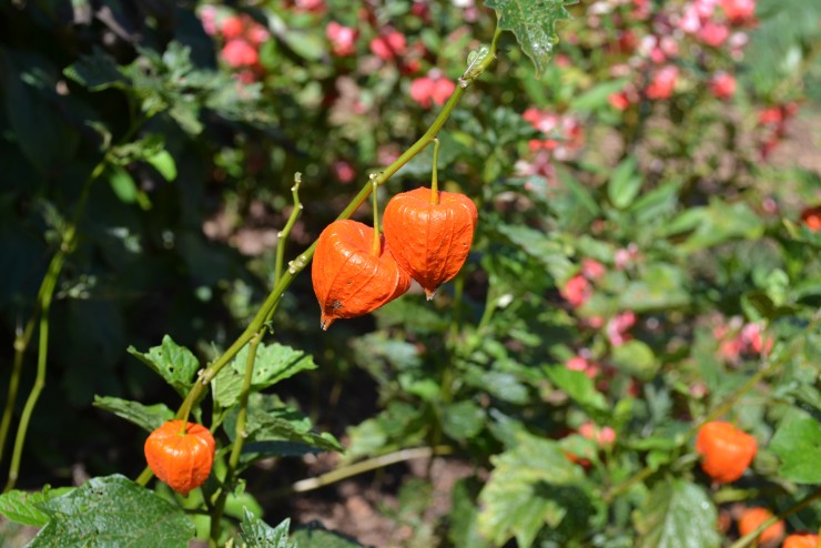 This hardy species is native from southern Europe to Northern Asia and Japan, and was documented in European gardens as early as 1548. It is a member of the Solanaceae (Tomato) family, and is also known as Japanese Lantern, Bladder Cherry, Strawberry Tomato, and Winter Cherry. In 1807, Thomas Jefferson listed in his Garden Book: “Physalis Alkekengi – European winter cherry,” and he devoted an entire oval flower bed to this curious species. Jefferson’s source may have been Philadelphia nurseryman Bernard McMahon, who included “Physalis Alkekengi-European Winter-Cherry” in his book The American Gardener’s Calendar, 1806. Tiny, bell-shaped, white flowers in spring develop into showy, orange-red, lantern-like pods that form around the fruit in late summer. The showy pods are popular in dried flower arrangements.