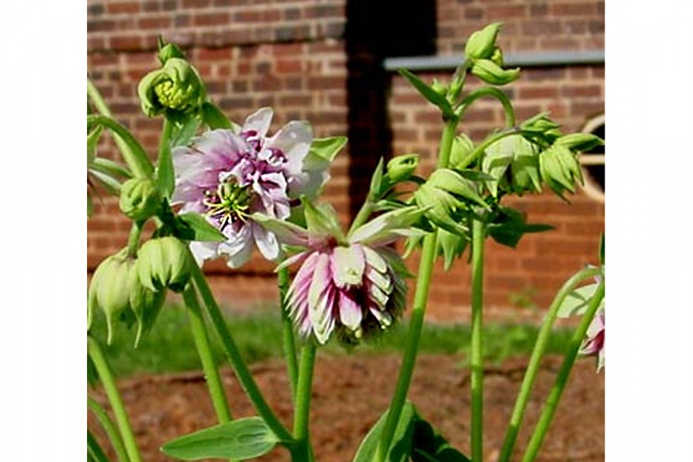 Nora Barlow is a modern name attached to an ancient type of "rose" columbine in which the sepals are doubled with an unusual greenish tinge. These types were illustrated in European herbals of the early seventeenth century.