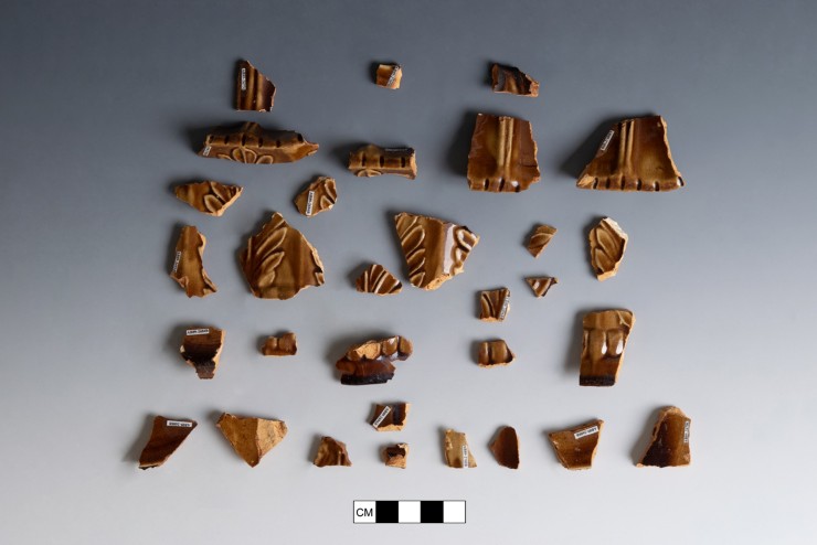 Fragments of one or more Rockingham/Bennington ware spittoon (1830-1900)