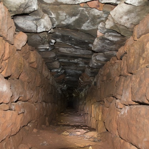 During our excavations, we carefully recorded the stratigraphic layers representing the original mountaintop ground surface and the episodes of digging and deposition that created the artificial topography of the East Lawn that we see today. We learned that the 150-foot-long stone tunnel was carefully constructed in a trench dug through these earlier layers. The trench was from 3-to-6-feet deep and 6-feet wide.