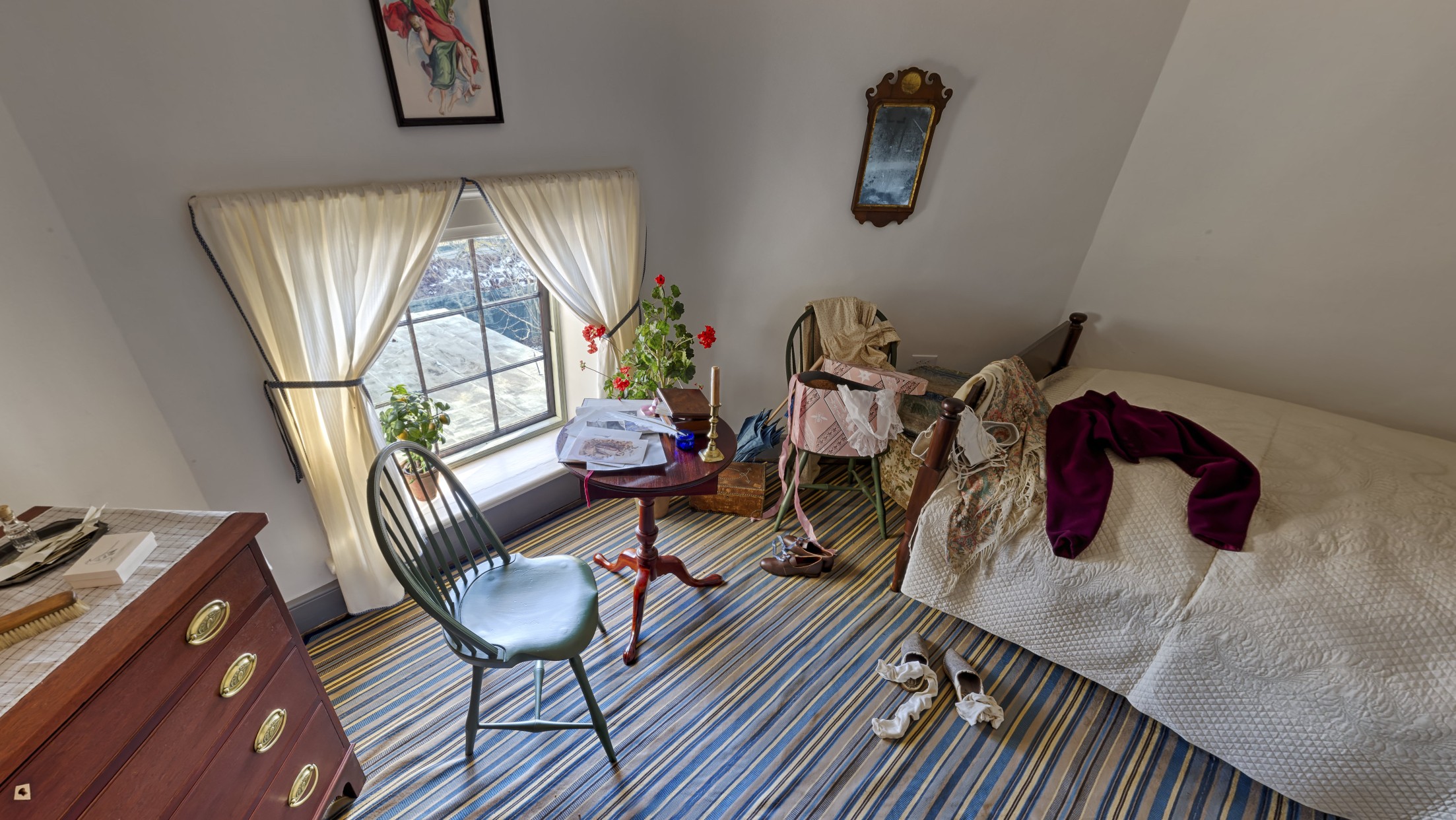 Jefferson’s granddaughters, particularly Cornelia, Virginia, and Ellen Randolph, occupied this room at various times during his retirement years. It is directly above Jefferson’s office and Ellen Randolph later wrote of hearing her grandfather at work, “humming old tunes, generally Scotch songs but sometimes Italian airs or hymns.”