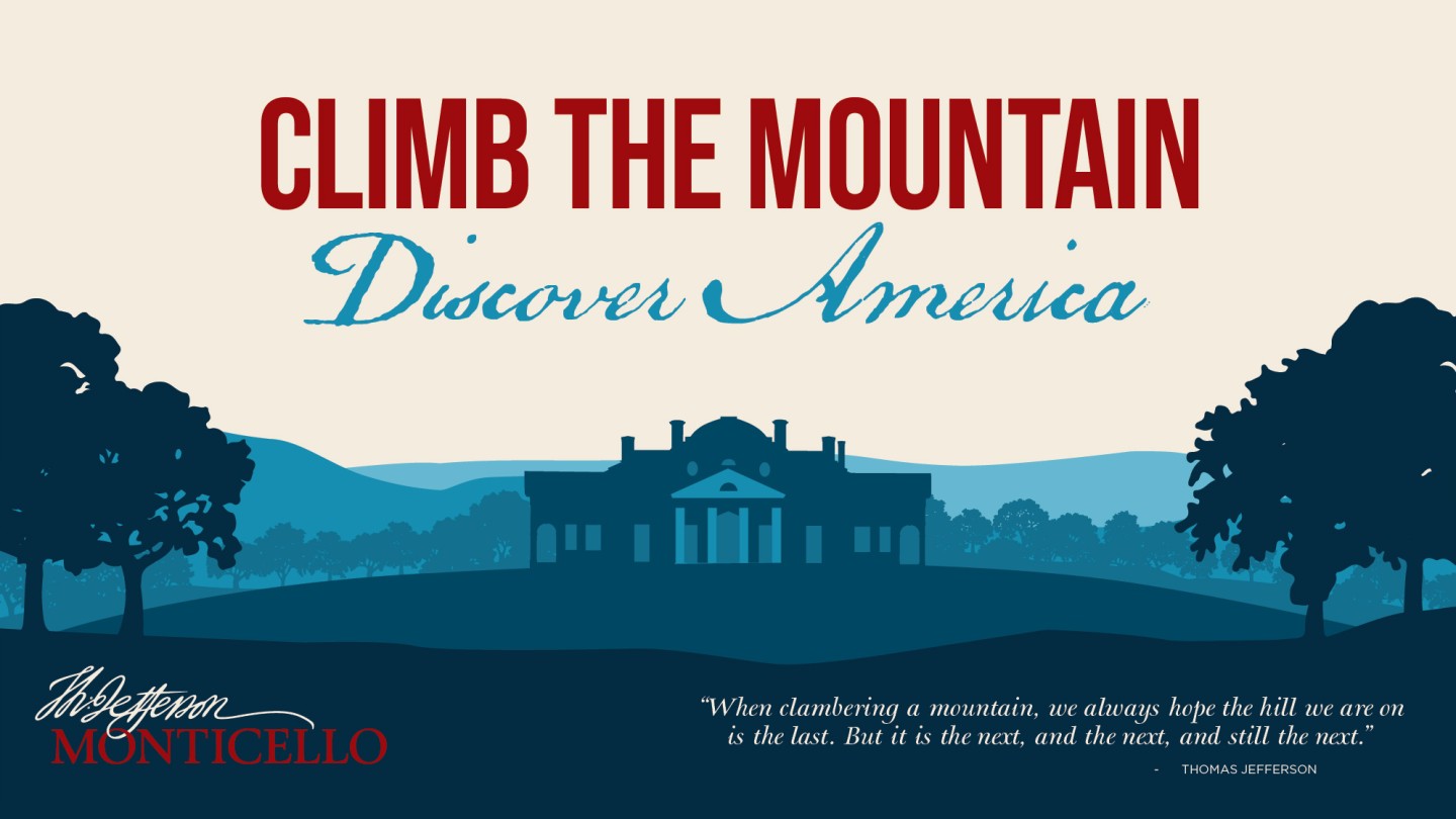 The new "Climb the Mountain, Discover America" strategic plan looks to seize the generational opportunity of 2026 and position Monticello as the nation's top historical destination for visitors of all ages and backgrounds, from all nations, both on-site and online. This plan will utilize the beauty and significance of our well-preserved historic site to share honest stories about America's complex origins and its ongoing journey toward the ideals expressed by Jefferson in the Declaration of Independence.